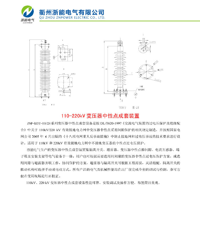 1)符合國家標(biāo)準(zhǔn)和行業(yè)標(biāo)準(zhǔn)。SYNPD型變壓器中性點過電壓保護成套裝置嚴(yán)格按照國標(biāo)GB311.1《高壓輸變電設(shè)備的絕緣配合》、GB11032《交流無間隙金屬氧化物避雷器》及電力行業(yè)標(biāo)準(zhǔn)DL/T620《交流電氣裝置的過電壓保護和絕緣配合》等的規(guī)定進行設(shè)計和制造。