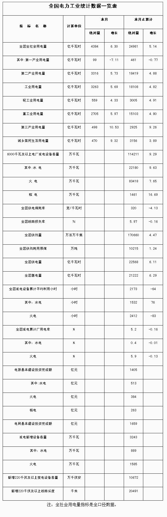 附:全國電力工業(yè)統(tǒng)計數(shù)據(jù)